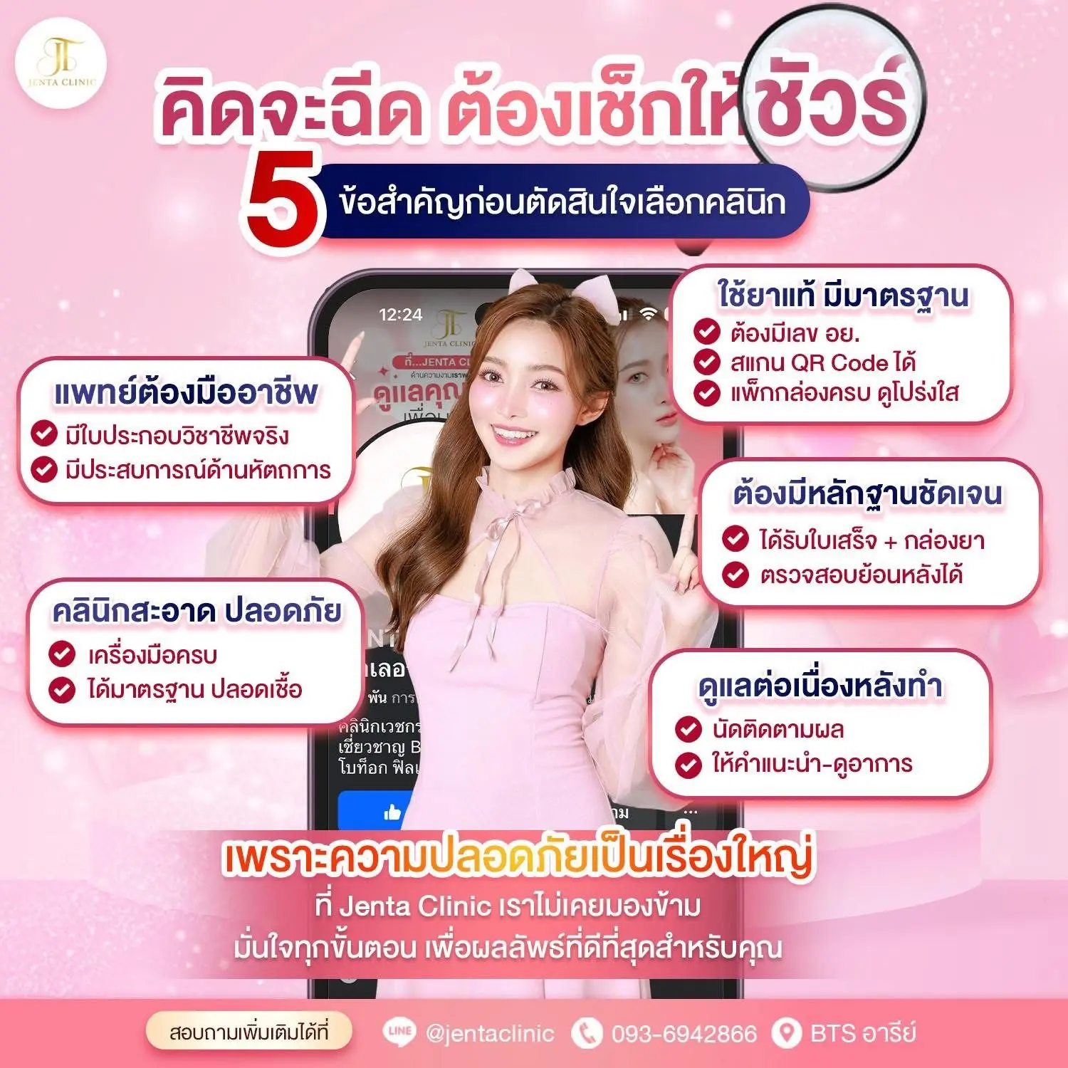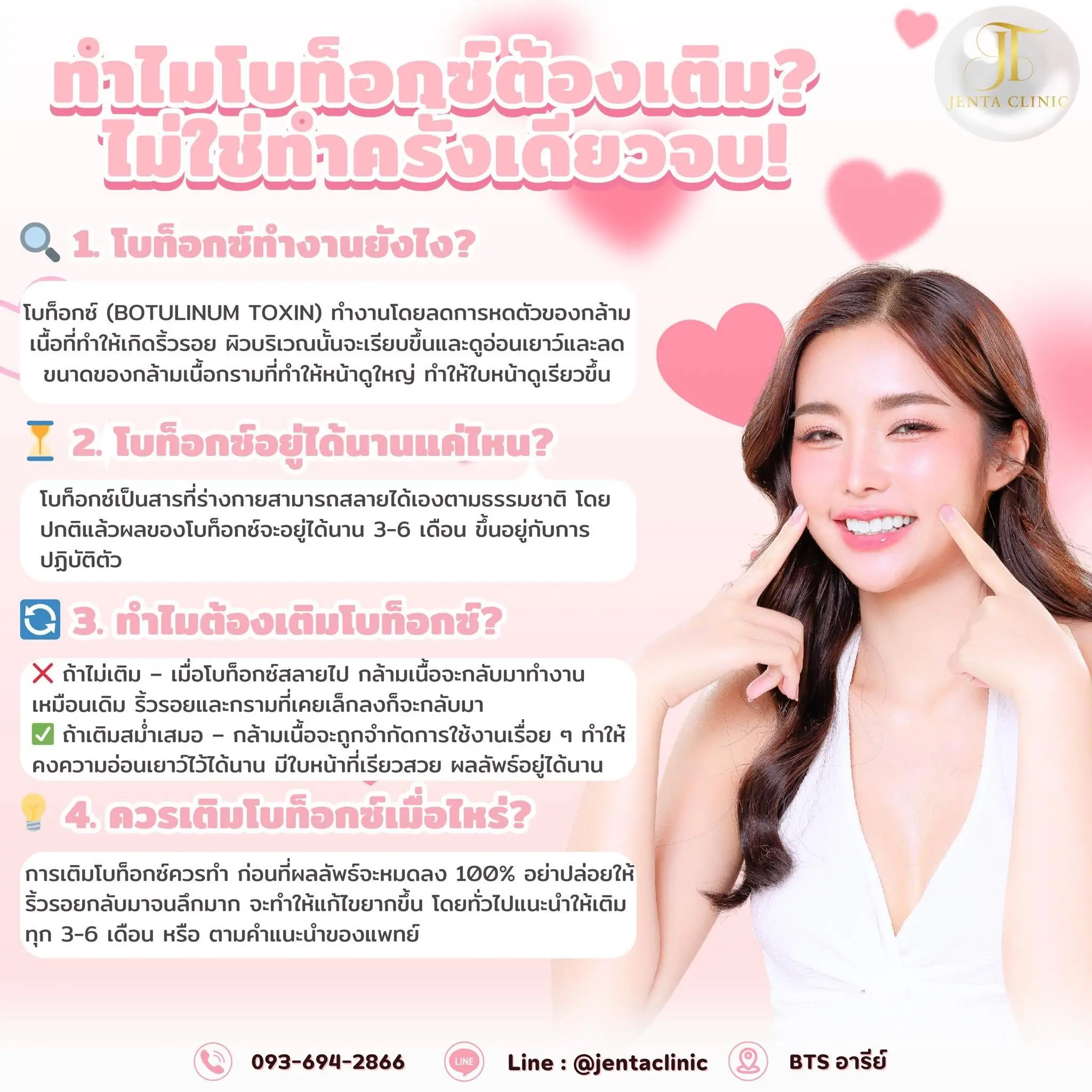Botox เป็นหัตถการที่ปลอดภัย เห็นผลเร็ว และให้ผลลัพธ์ที่เป็นธรรมชาติเมื่อทำโดยแพทย์ผู้เชี่ยวชาญ เหมาะสำหรับผู้ที่ต้องการลดริ้วรอย ปรับรูปหน้า หรือแก้ไขปัญหากล้ามเนื้อโดยไม่ต้องผ่าตัด การเลือกคลินิกที่ได้มาตรฐานและใช้ตัวยาแท้ที่ผ่าน อย. คือปัจจัยสำคัญที่สุด เพื่อให้ได้ผลลัพธ์ที่สวย ปลอดภัย และคงอยู่ยาวนาน.